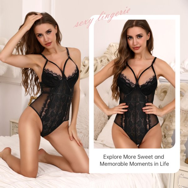 This one piece lingerie features a deep V neck, elegant cross strap front design, and adjustable shoulder straps for a perfect fit. The style highlights your curved waist, blending sexy and confidence in every detail.