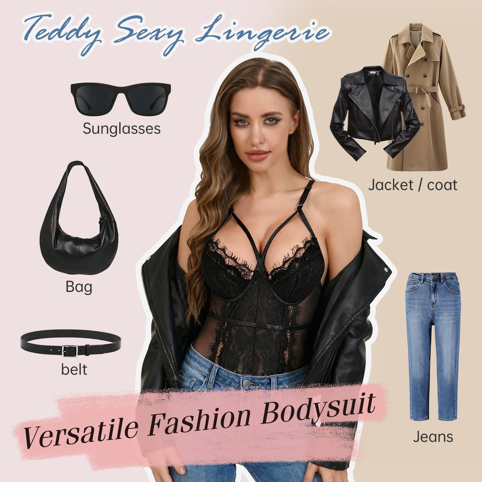 This one piece lingerie features a deep V neck, elegant cross strap front design, and adjustable shoulder straps for a perfect fit. The style highlights your curved waist, blending sexy and confidence in every detail.